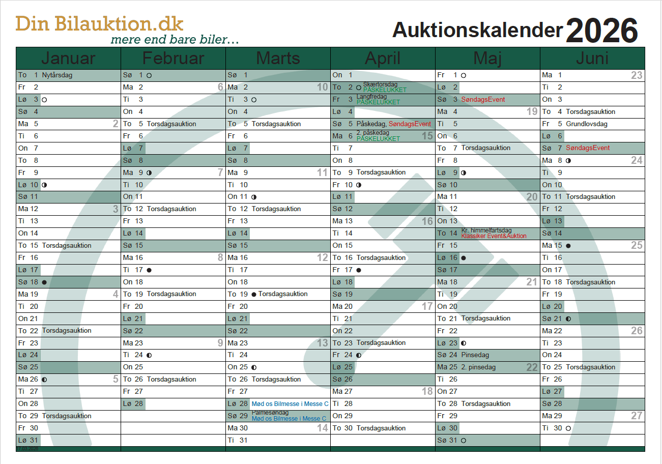 Flere gange om året byder vi også på særlige auktioner med fokus på klassiske og unikke køretøjer samt events, hvor området forvandles til et samlingspunkt for motorentusiaster. Her handler det ikke kun om køb og salg – men om oplevelser, fællesskab og passion for alt med en motor.